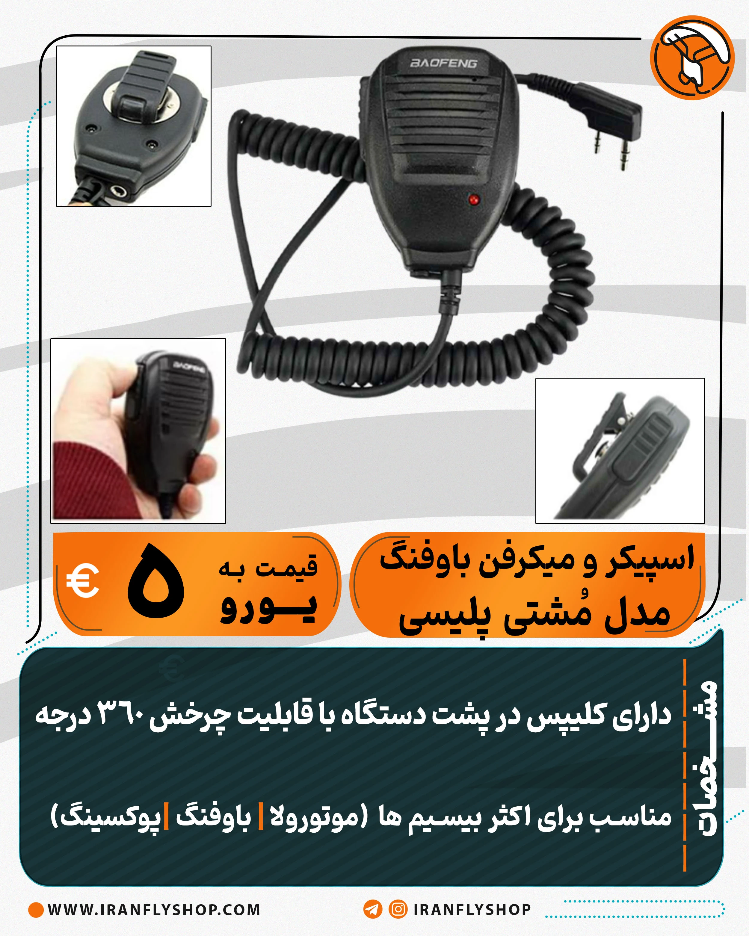 دارای کلیپس در پشت دستگاه با قابلیت چرخش 360 درجه