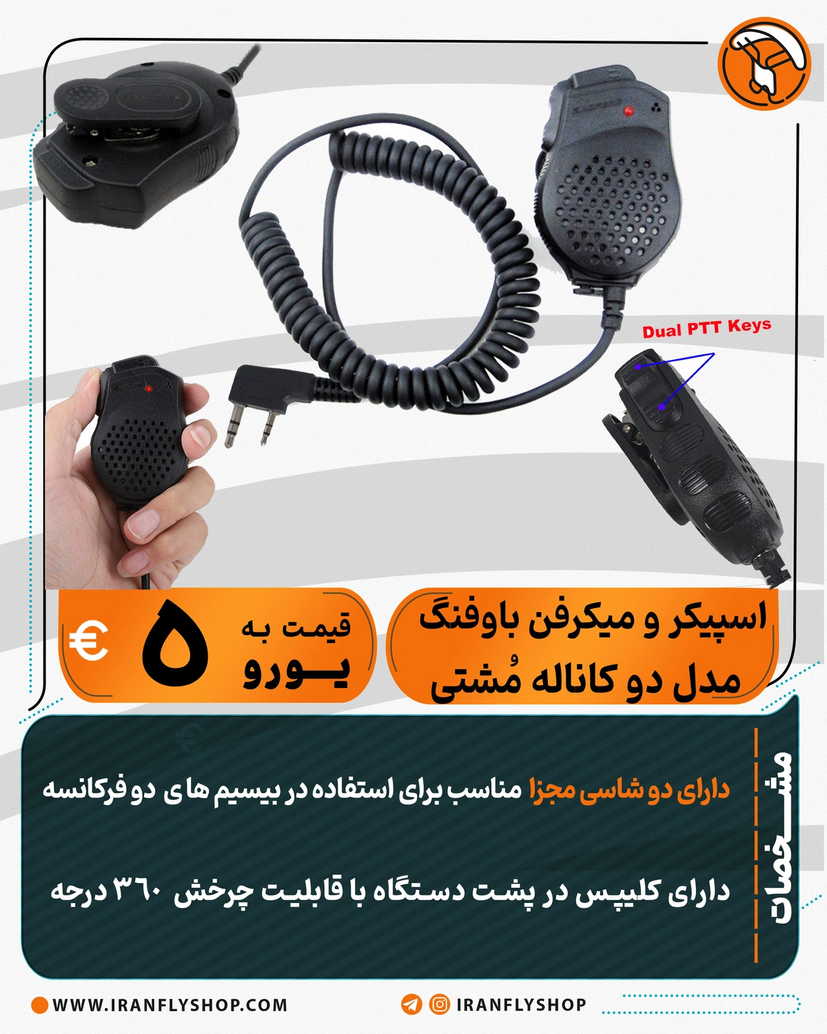 دارای کلیپس در پشت دستگاه با قابلیت چرخش 360 درجه